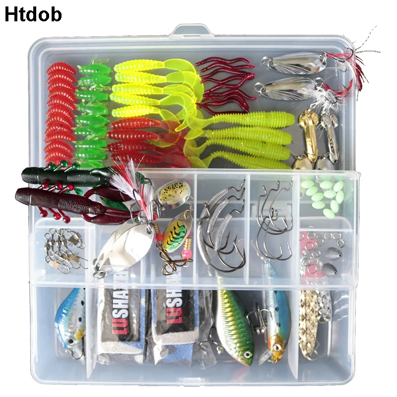 HIGH QUALITY Htdob 105pcs Lure Set Spinner DD Lure Minnow Popper VIB Paillette Soft Hard Spoon Crank Baits Fishi